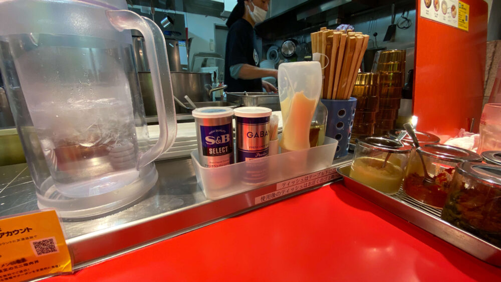 ▲無限にんにく、おろしにんにく、刻み生姜、おろし生姜など、豊富な卓上調味料。
