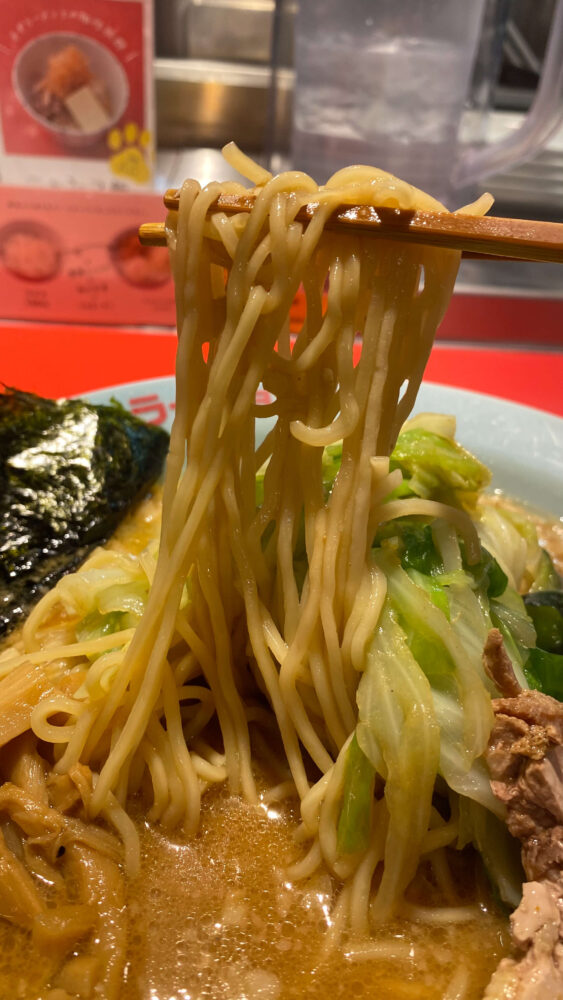 ▲ほんのりウェーブのかかった中細麺。味噌スープに絡んで旨し。