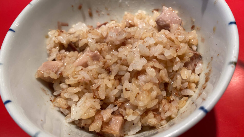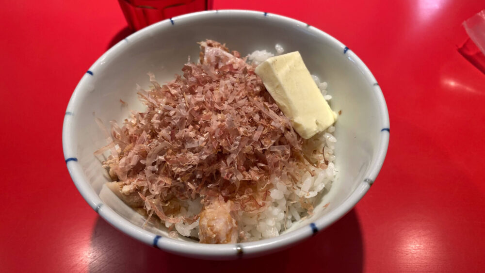 ▲これが旨し!ご飯にバターとかつお節、角切りチャーシューが合わないわけがありませんね。