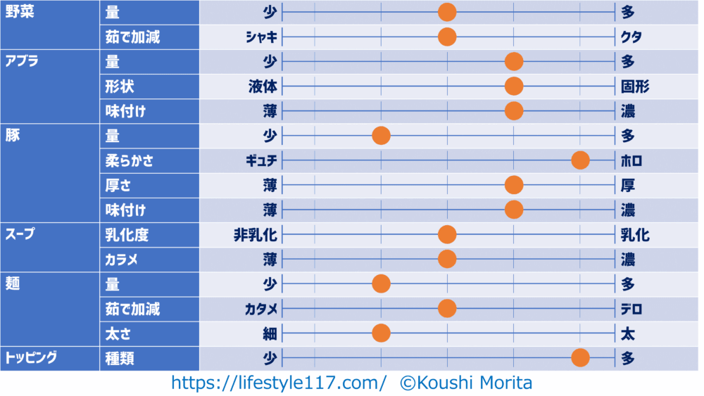 私は原則ニンニクを入れない(妻に怒られるので)ため、項目からニンニクは除外しています。