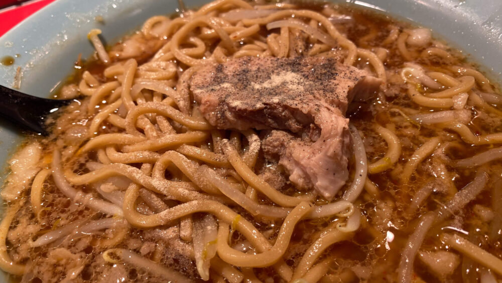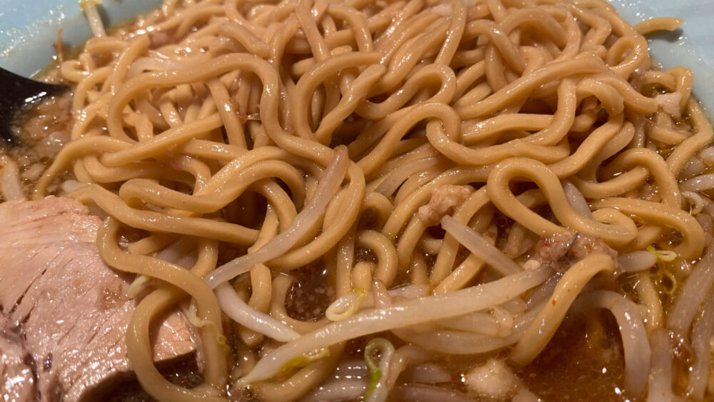▲麺は二郎系では細い部類でズバズバすすれるやつ。スープがよく絡みます。