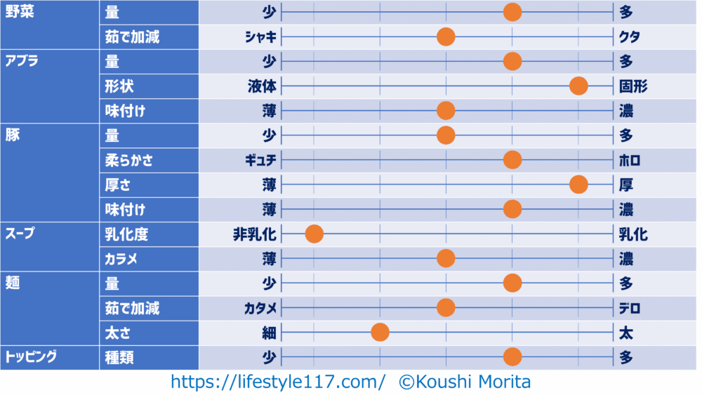 私は原則ニンニクを入れない(妻に怒られるので)ため、項目からニンニクは除外しています。