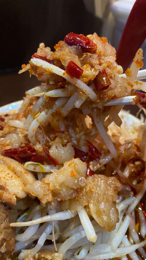辛いラーメンはしっかり辛く、豚やアブラの威力を高めてくれた旨辛スープが良かったです!
