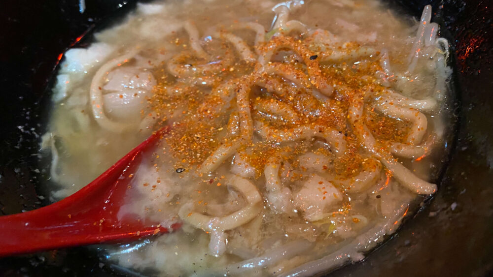 ▲最後は唐辛子で味変。辛さブーストでラストスパート。