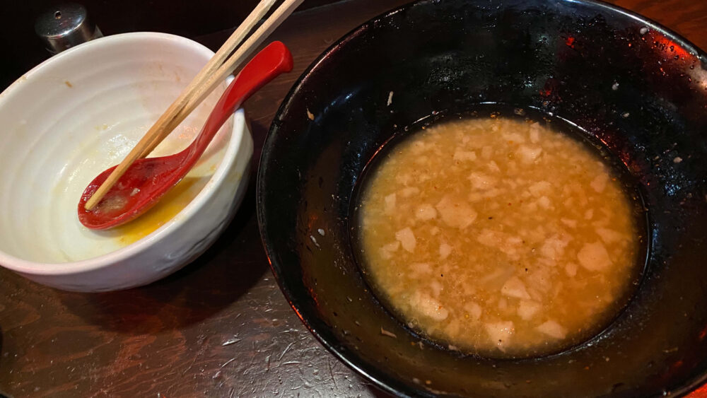 ▲非乳化スープ。すっきりめな味わいですが、あぶらの量は多めで醤油がキリっと立っています。