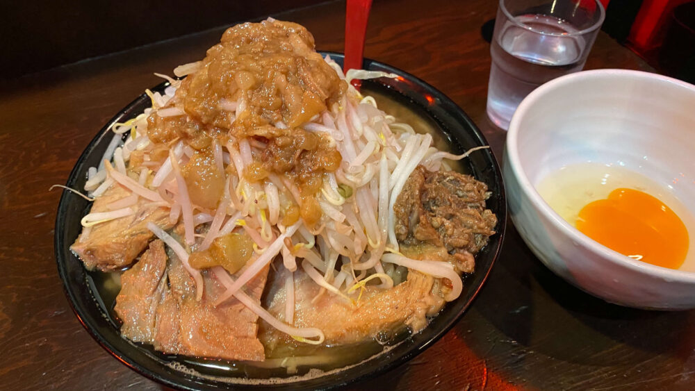 「ラーメン大ブタ ブタ4枚(やさい多めにんにく無し味あぶら多め)+生たまご」を実食!