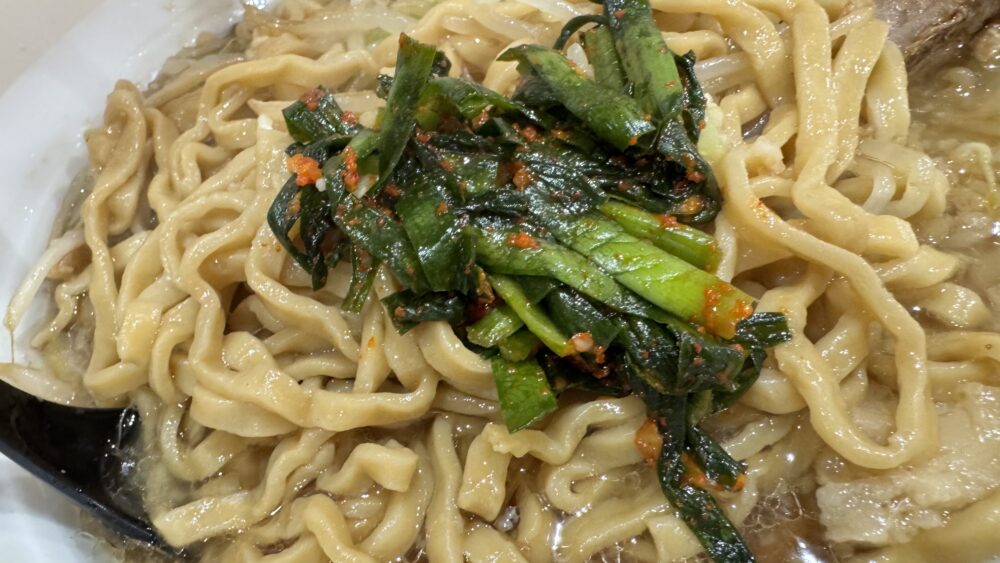 ▲終盤はニラキムチで味変。ピリ辛でシャクっとした食感も加わり辛旨。良い味変アイテムですね。