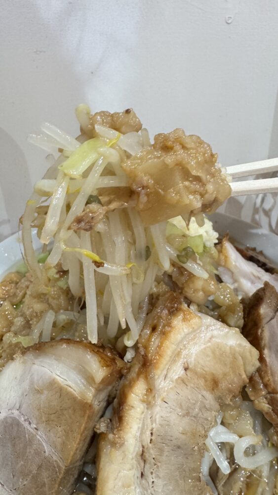背脂マシマシの量は、二郎系のお店でも上位に入るくらいたっぷりなので、背脂好きはぜひマシマシを試してみてください。