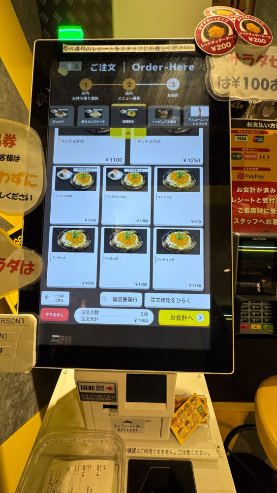 ▲デジタルな食券機で注文します。クレジットカードや電子マネー等に対応しているのがありがたい。