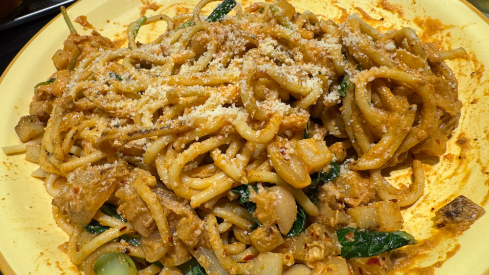 プロテインパウダーも配合されているので、パスタなのにタンパク質豊富です(笑)
