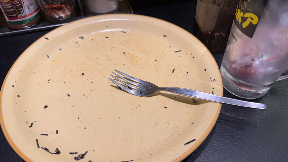 大きめのサイズにすると、明太子を麺と混ぜ合わせるのが大変ですが、その大変さもスパイスになっているかもですね。