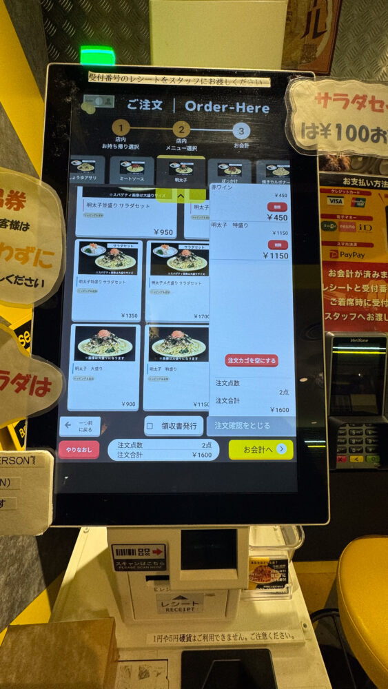 ▲デジタルな食券機で注文します。クレジットカードや電子マネー等に対応しているのがありがたい。
