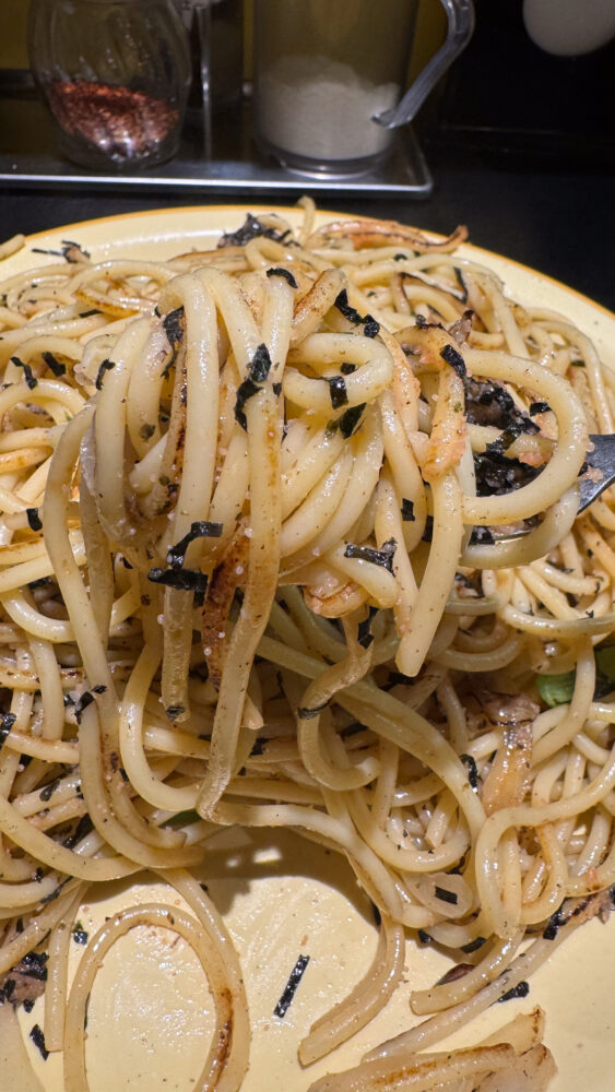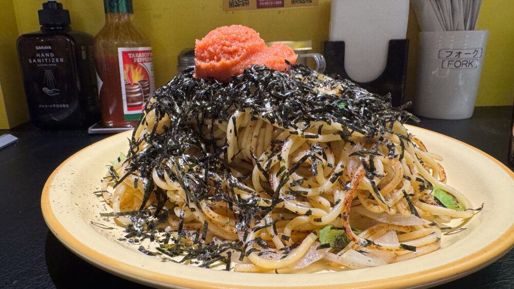 明太子と刻み海苔がふんだんに盛られ、人生で一番ボリュームのある明太子パスタかもしれません!