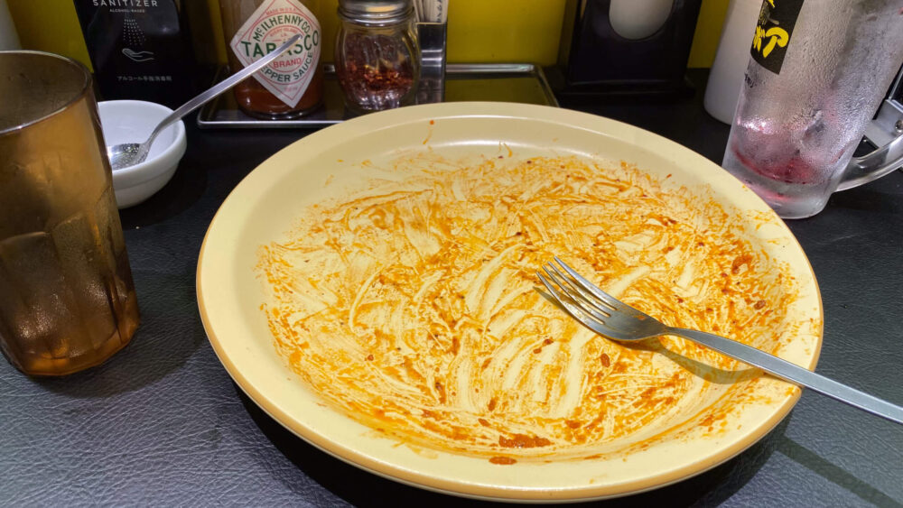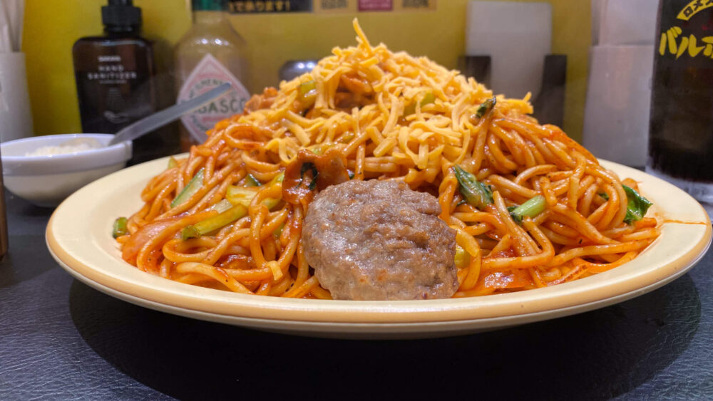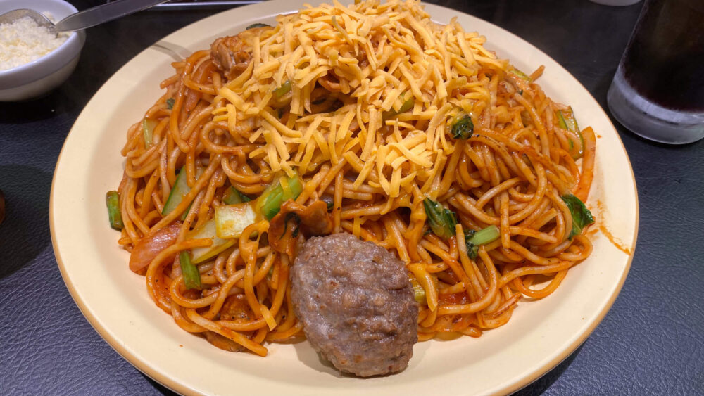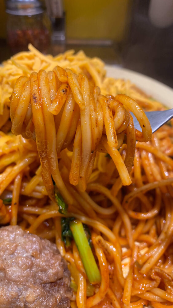 「ナポリタン メガ盛り+チェダーチーズ+ハンバーグ+かち割り赤ワイン」を実食!