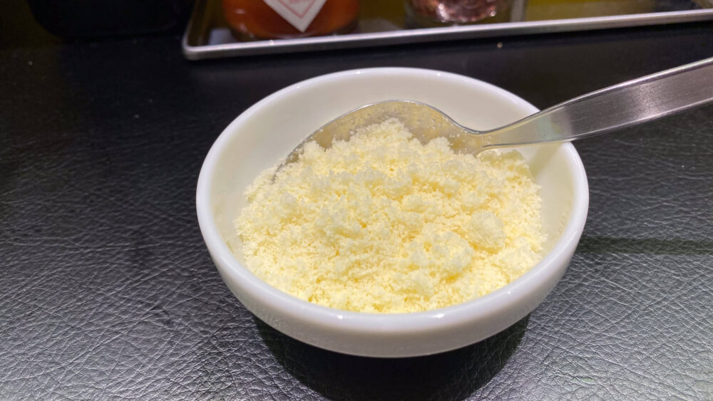 ▲さらに粉チーズを大量投入し、今度はマイルドに味変!ジャンクさがアップしてこれまた美味。