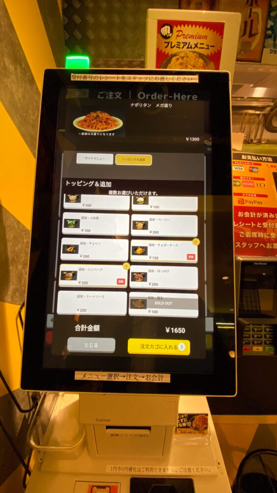▲デジタルな食券機で注文します。クレジットカードや電子マネー等に対応しているのがありがたい。