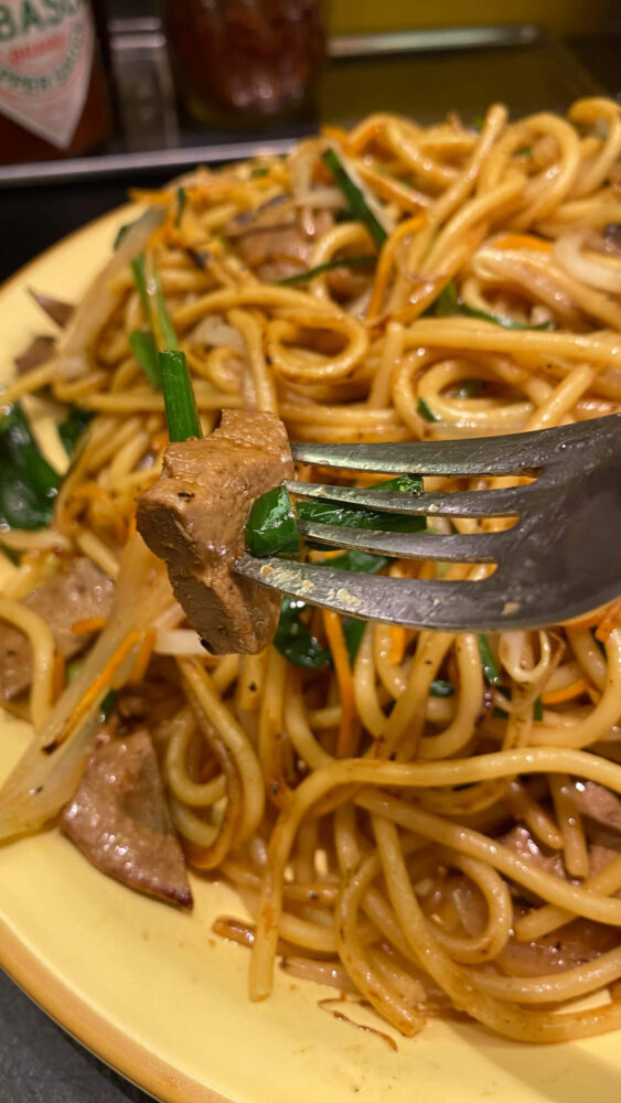 確かにパスタですが、しっかりとレバニラ感を感じられる一皿ですね!オイスターソースの良い香りが食欲をそそります。