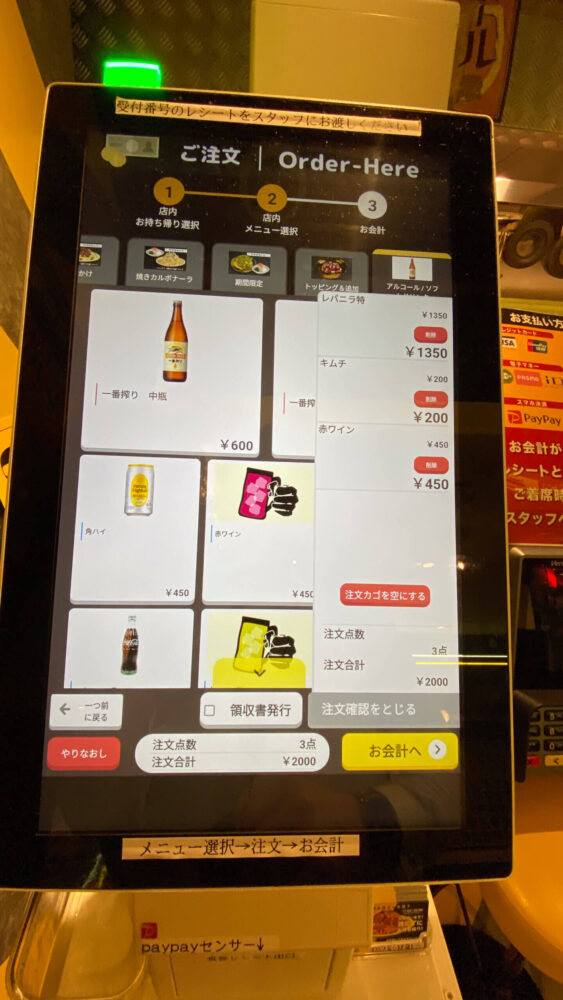 ▲デジタルな食券機で注文します。クレジットカードや電子マネー等に対応しているのがありがたい。