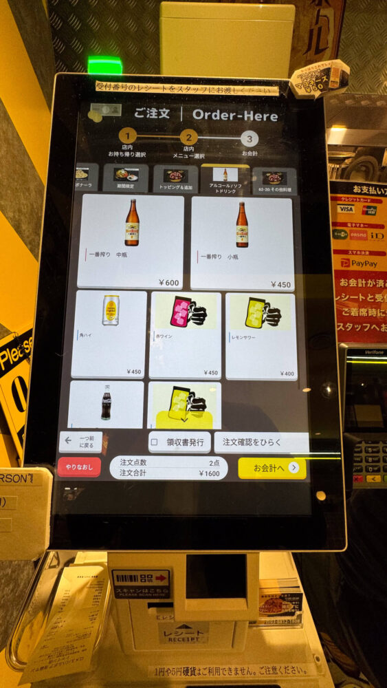 ▲デジタルな食券機で注文します。クレジットカードや電子マネー等に対応しているのがありがたい。