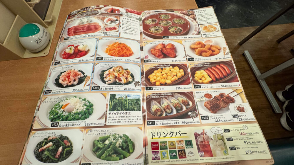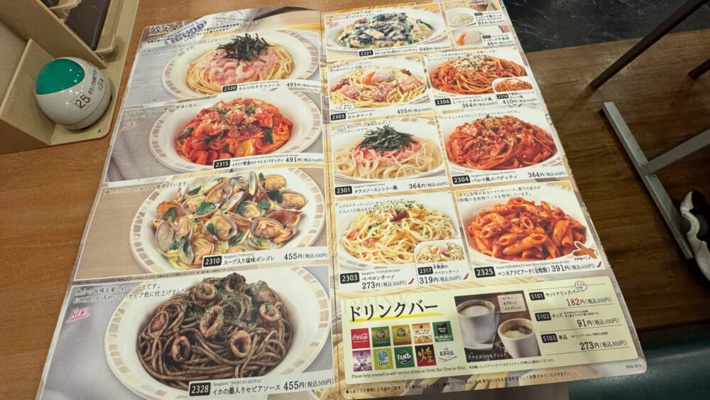店員さんに席を案内してもらったら、メニューから注文しましょう。