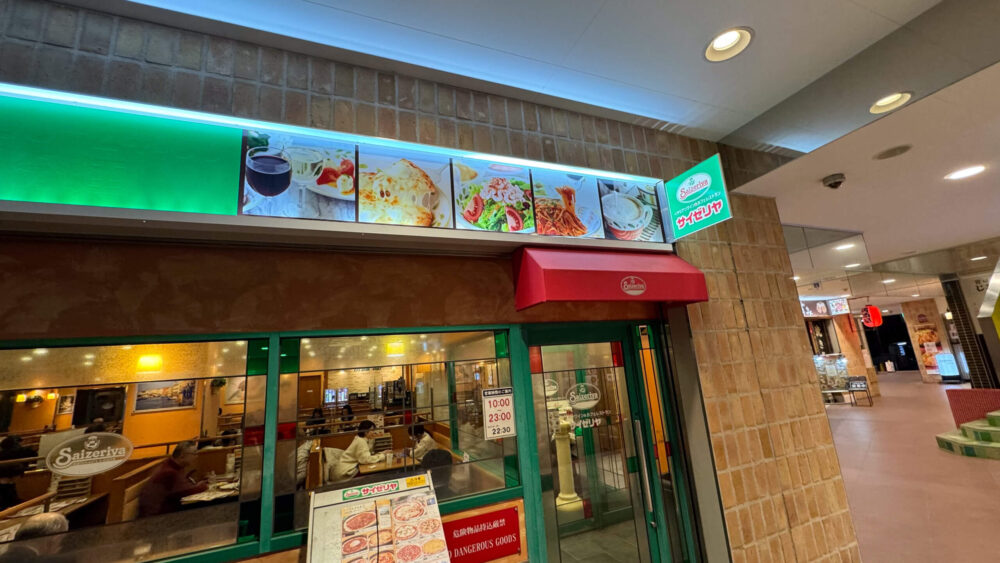 ▲サイゼリヤと言えばの緑多めのイタリアンカラーな外観。クロスコート秋津店は秋津駅と新秋津駅の中間くらいにあります。