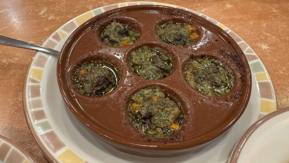 ▲エスカルゴのオーブン焼き(税込400円)。白ワインと合わせたくて注文しました。