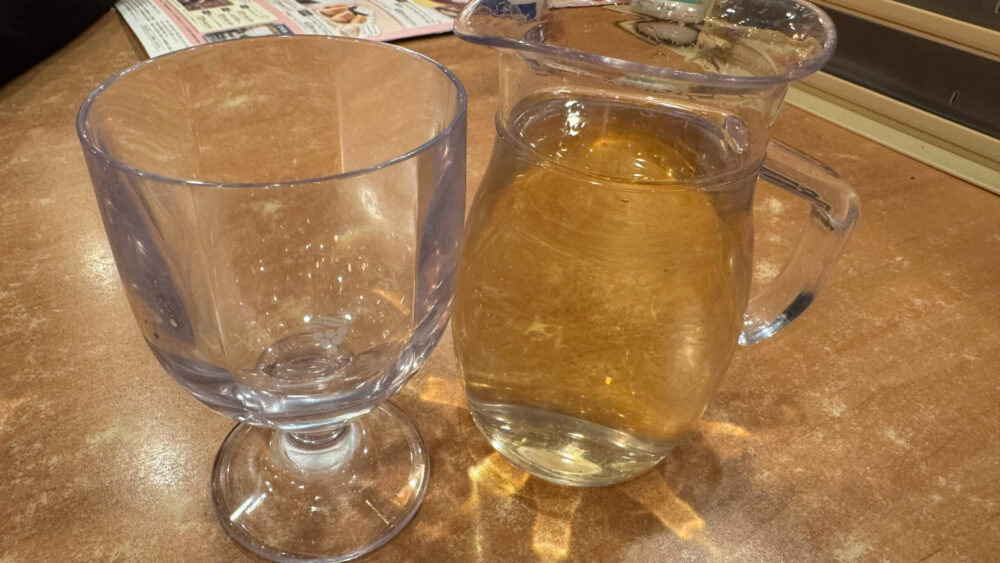 ▲白ワインのデカンタ(250ml)(税込200円)。この日は白から楽しみたい気分でした。