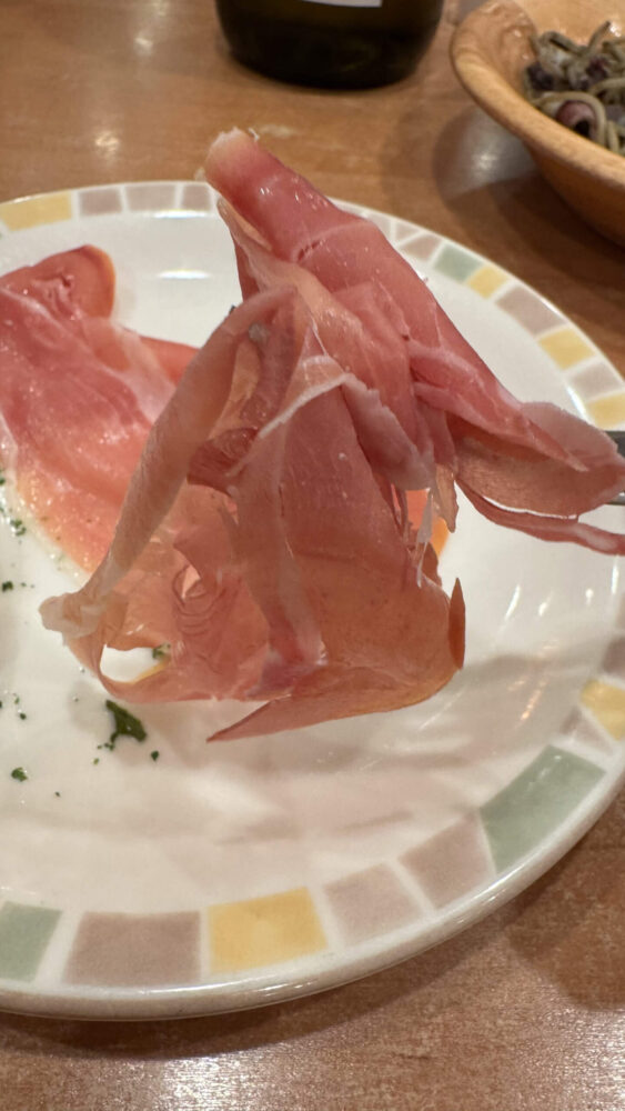 ▲ハモン・セラーノはほどよい塩味で口どけも良いタイプ。こちらもワインと合います。