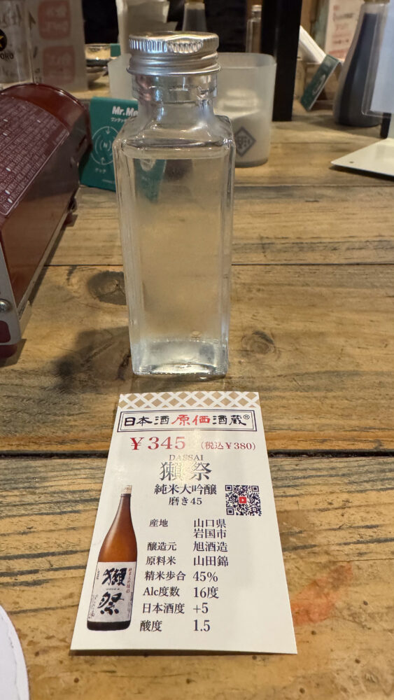 - 獺祭(だっさい)磨き45:380円