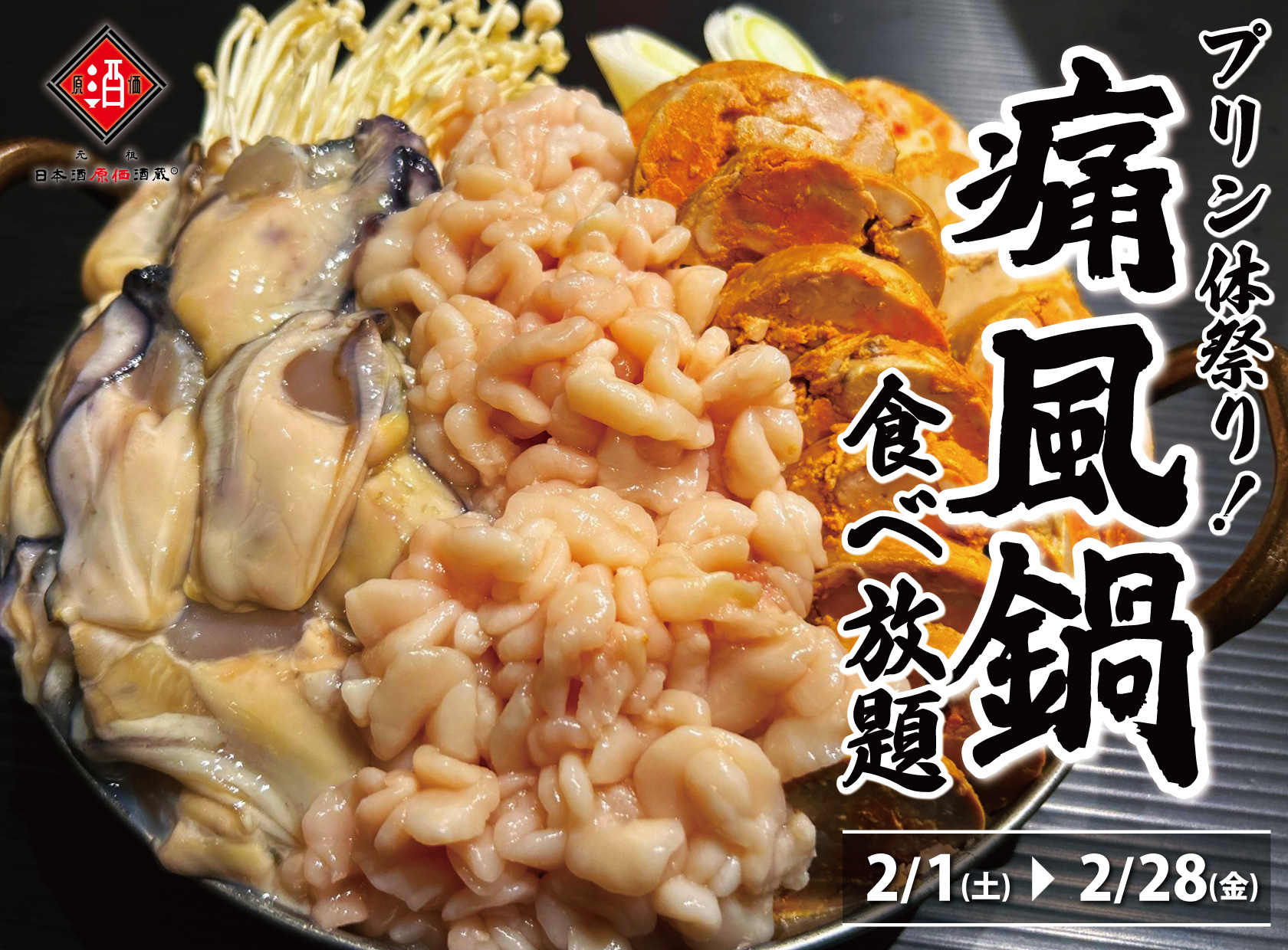 【1日10名様限定開催】牡蠣、白子、あん肝が食べ放題 『痛風鍋120分食べ放題』|2月1日(土)~2月28日(金)、日本酒原価酒蔵全店で開催