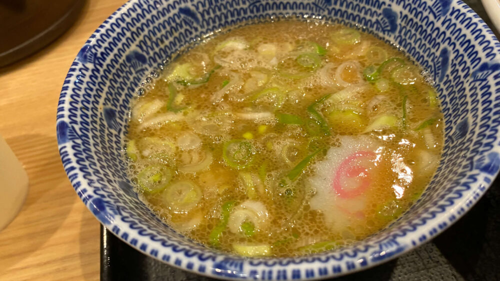 ▲麺を食べ終えたら割スープ。ほぼつけ汁が残っていなかったので、本当に気持ちだけですが(笑)
