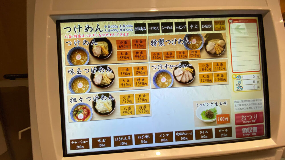▲デジタルな食券機で注文します。麺量も記載されているのが嬉しいところ。