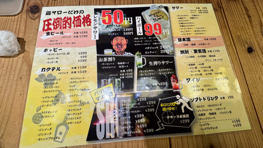 レモンサワー50円、サワー・カクテル99円~?安すぎる・・・!