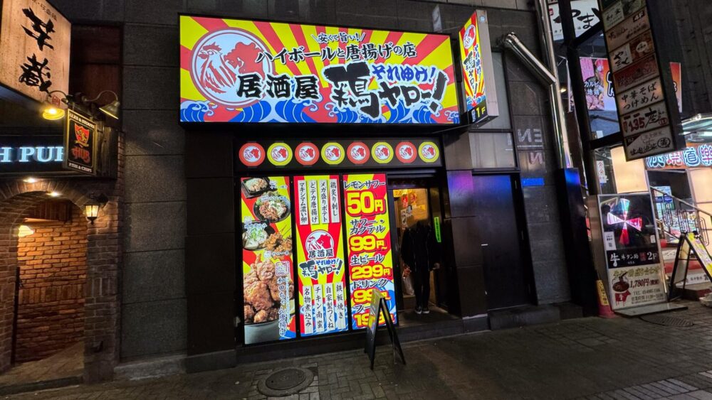 池袋駅の東口近辺を歩いていて、そんな衝撃的なお酒の値段に惹かれたのが「居酒屋それゆけ!鶏ヤロー!池袋店」。