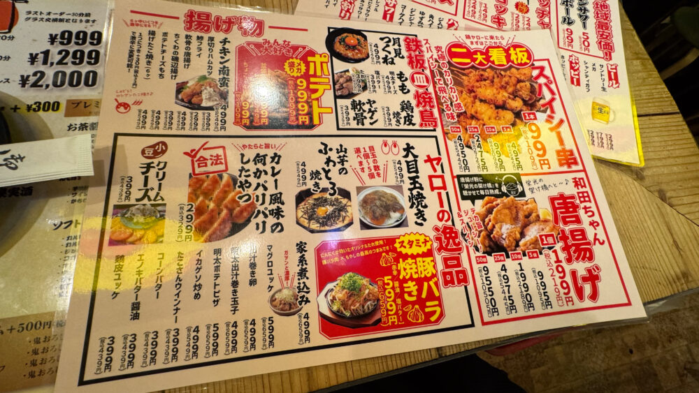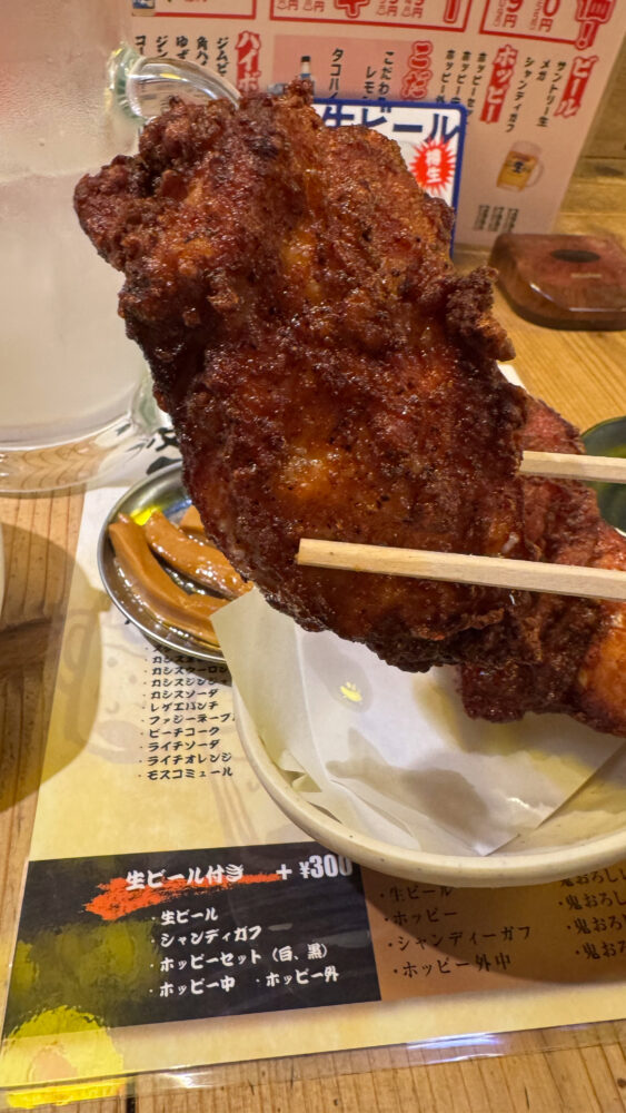 「和田ちゃん唐揚げ×2+黒胡椒メンマ+メガジョッキレモンサワー+ハイボール」を実食!