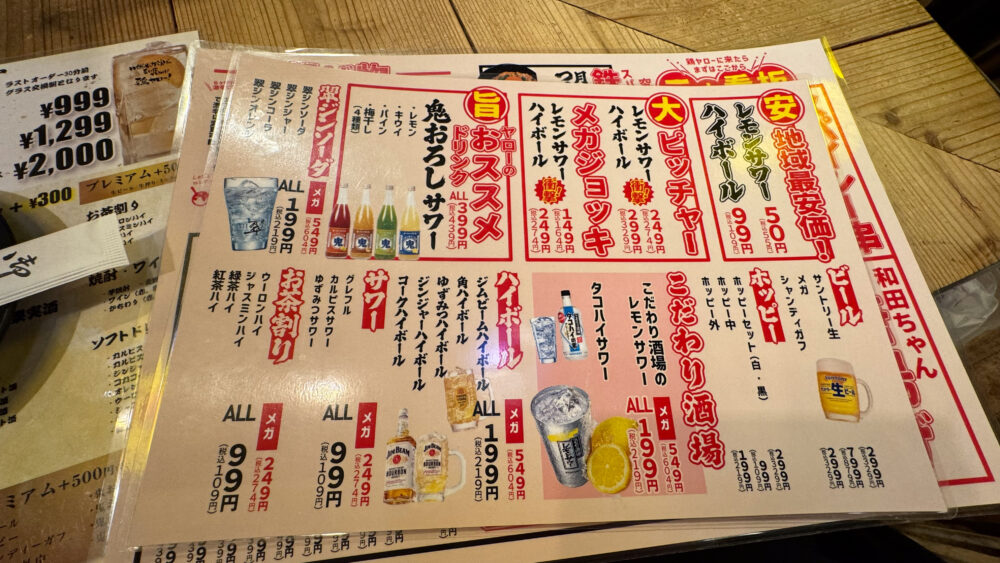 レモンサワー50円、サワー・カクテル99円~?安すぎる・・・!