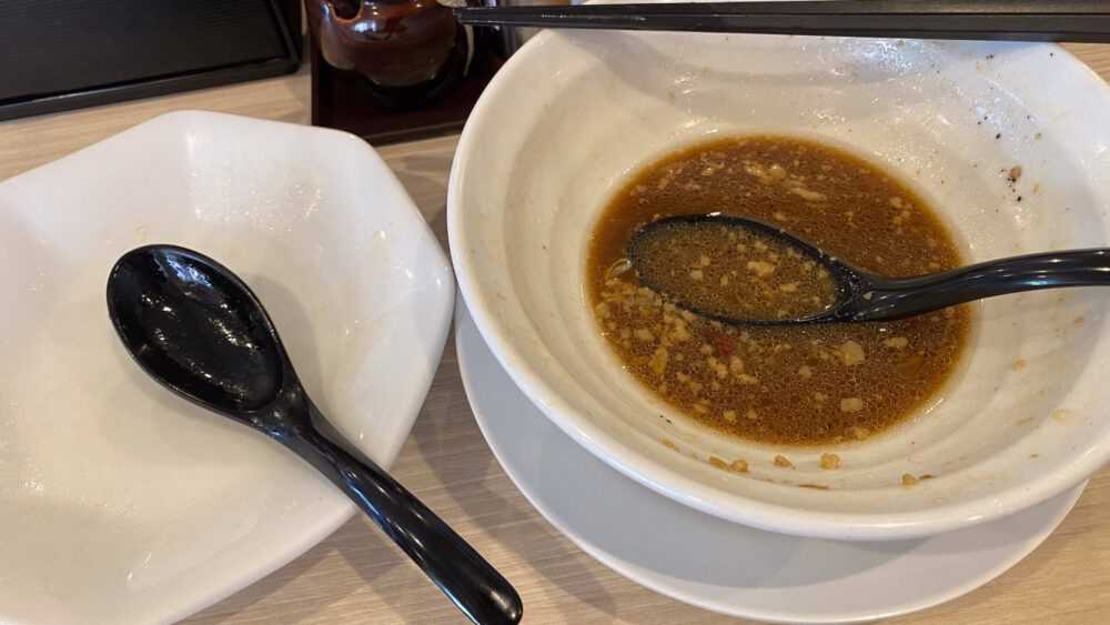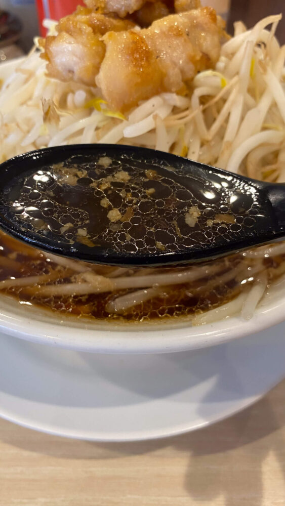▲スープは非乳化系。ニンニクと醤油が効いていて美味です。