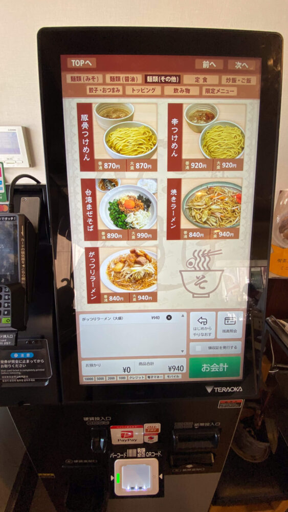 ▲デジタルな食券機で注文します。電子マネー決済できるのが嬉しい。