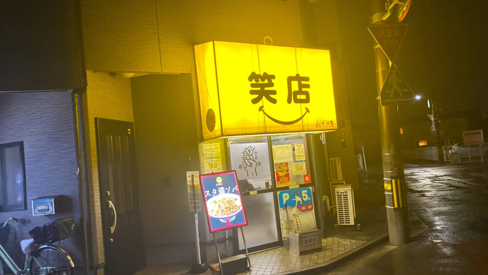 ▲住宅街の中に黄色い外観なので目立ちます。「笑店」とは店主のお父様時代の店名とのこと。
