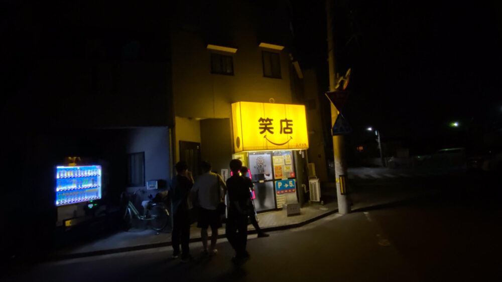 ▲住宅街の中に黄色い外観なので目立ちます。「笑店」とは店主のお父様時代の店名とのこと。