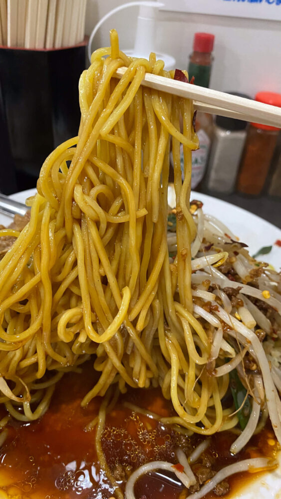 ▲麺は通常のスタ満ソバより細め。タレが良く絡んでご飯のおかずになります!
