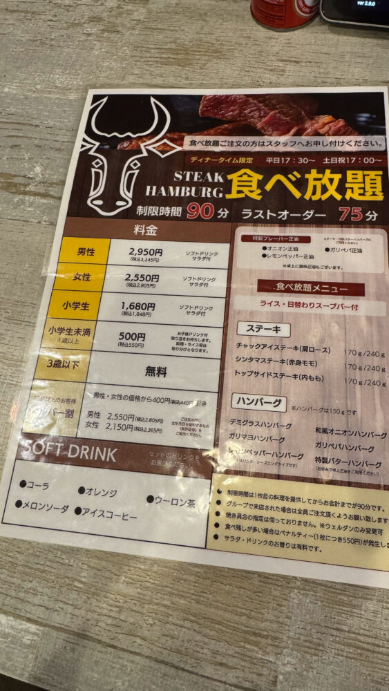 ステーキ・ハンバーグ食べ放題のルールは以下の通りです。