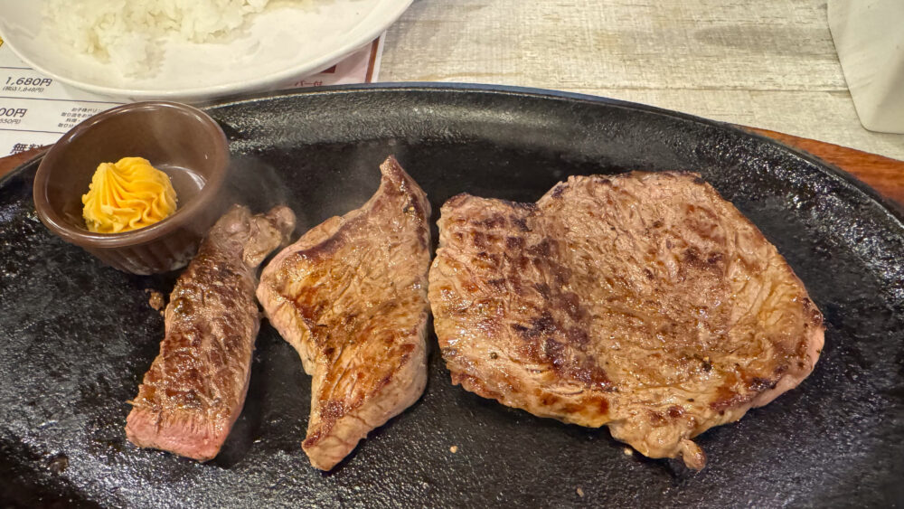 けっこうハンバーグの方が後半脂できつかったので、ステーキを中心にした方が多く食べれそうな気がしました。