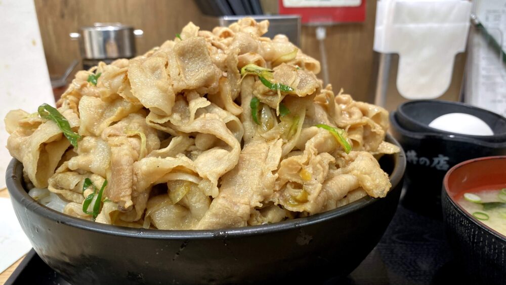 伝説のすた丼屋の量は、デフォのご飯が450g、お肉が110g。