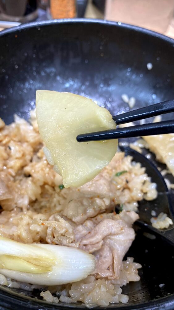 ▲オーソドックスな大根の漬物。終盤には非常にありがたいアイテム。