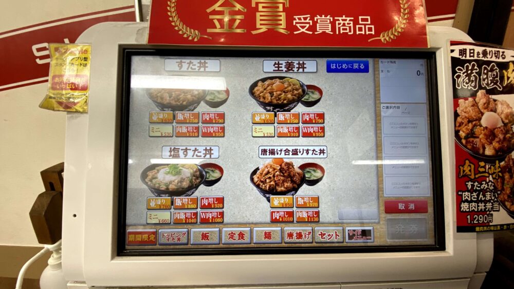 「生姜丼W肉増し+肉飯増し×2」をオーダー!