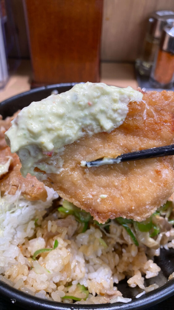 ▲後半はわさびタルタルで味変。ここで揚げ物はフィニッシュしちゃいます。
