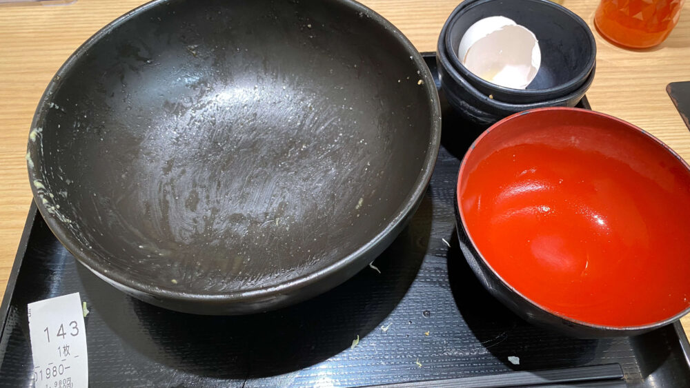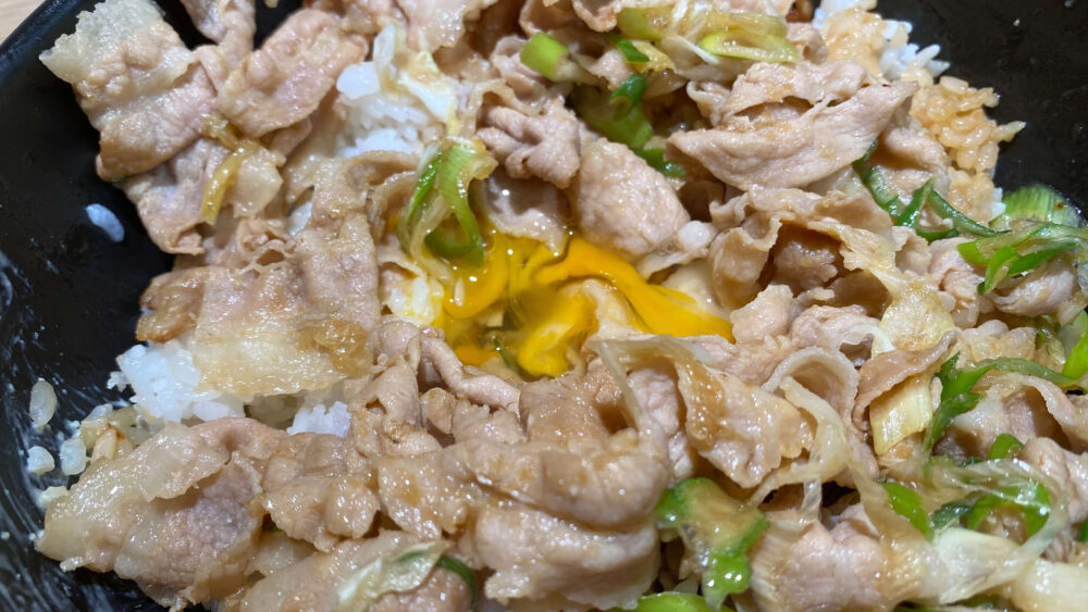 ▲すた丼部分だけになったら、玉子を投入。かっこんでラストスパート!