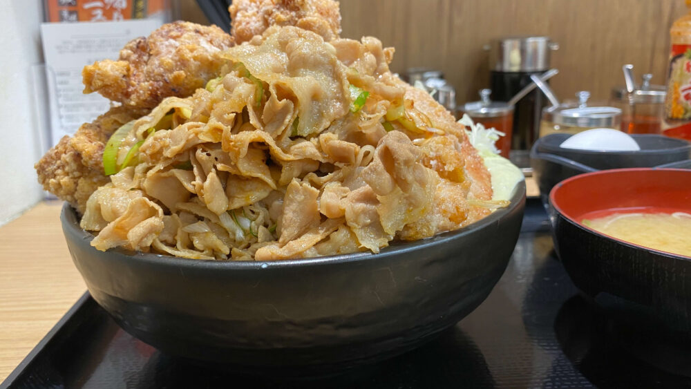 - ご飯+豚肉:約1,200g(すた丼の2倍)