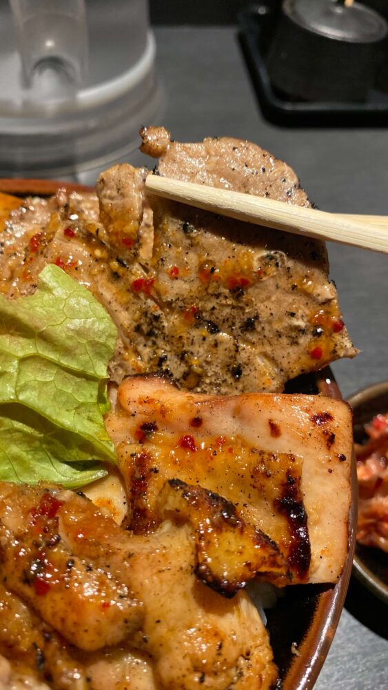 丼ぶりにきれいに並べられたお肉たちがめちゃくちゃ美味しそうですね・・・!